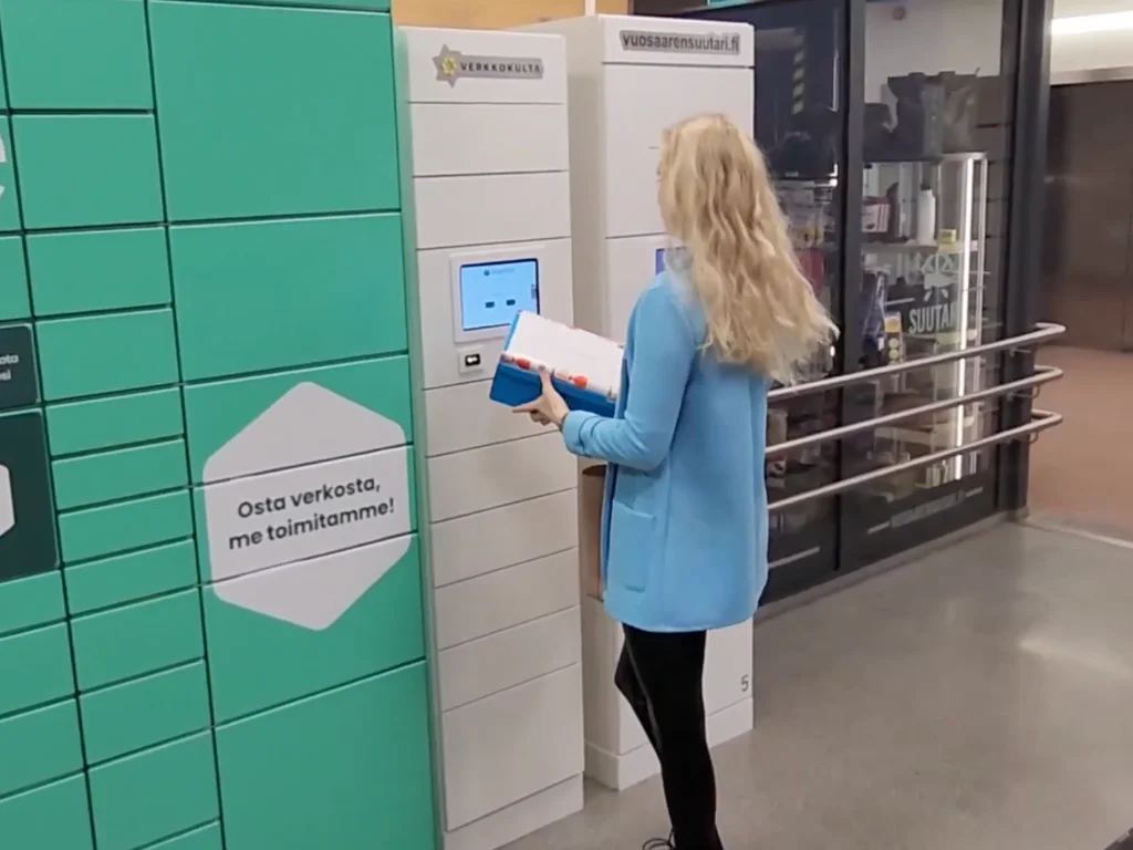 Syötä puhelinnumerosi automaattiin, syötä tekstiviestinä saamasi koodi ja valitse vapaa luukku.